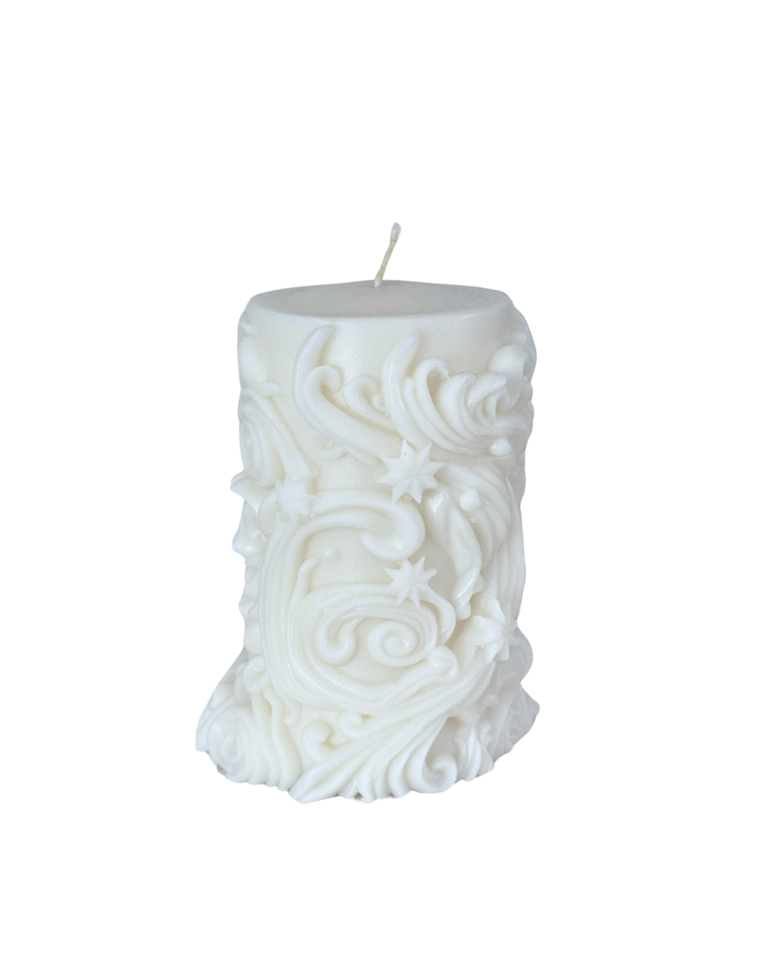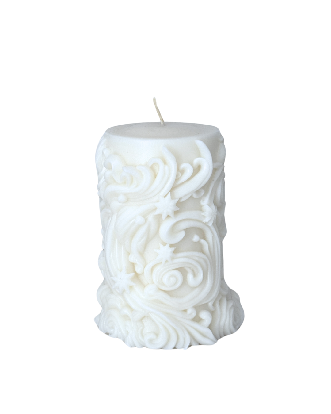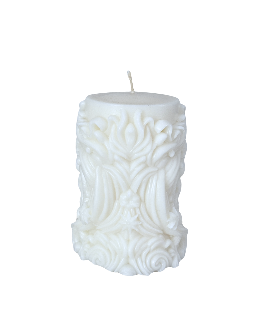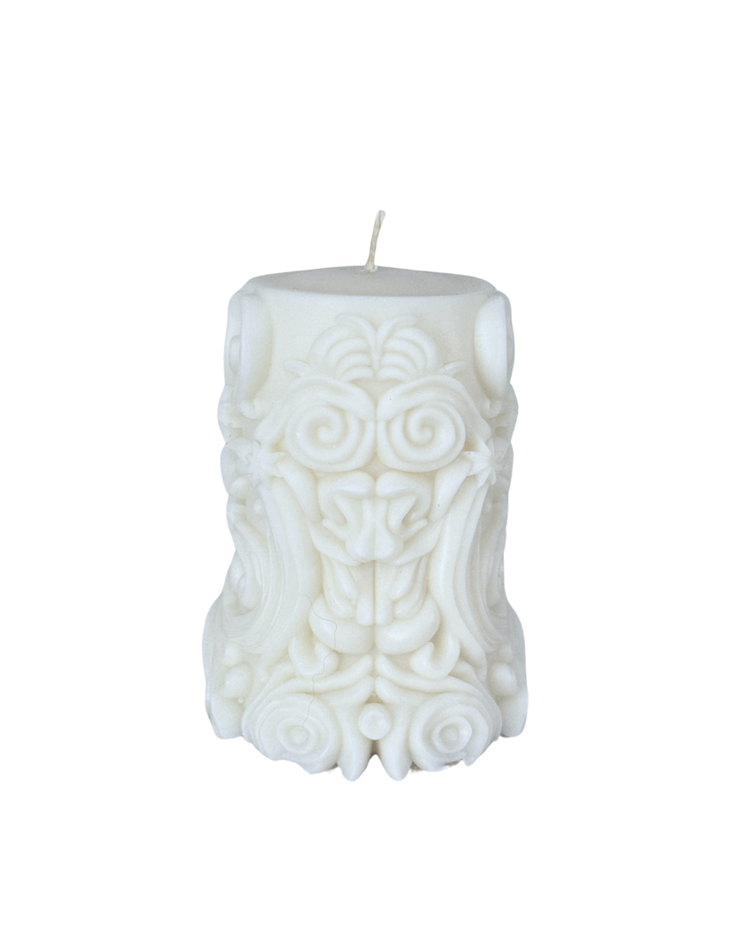 A majestic design delicately carved in wax, evoking ancient temples, spiritual symbols, and celestial forms. More than just a candle, it’s a piece of art meant for contemplation and subtle beauty. Perfect to create serene, spiritual, or simply unique atmospheres.